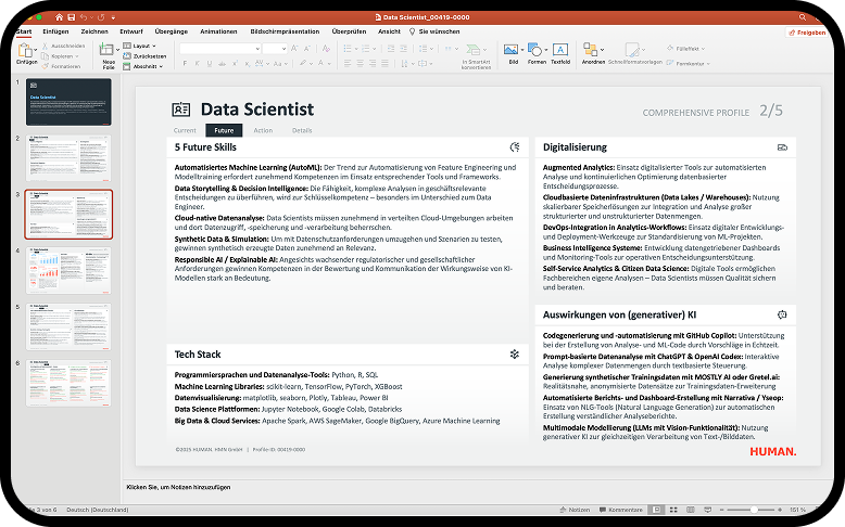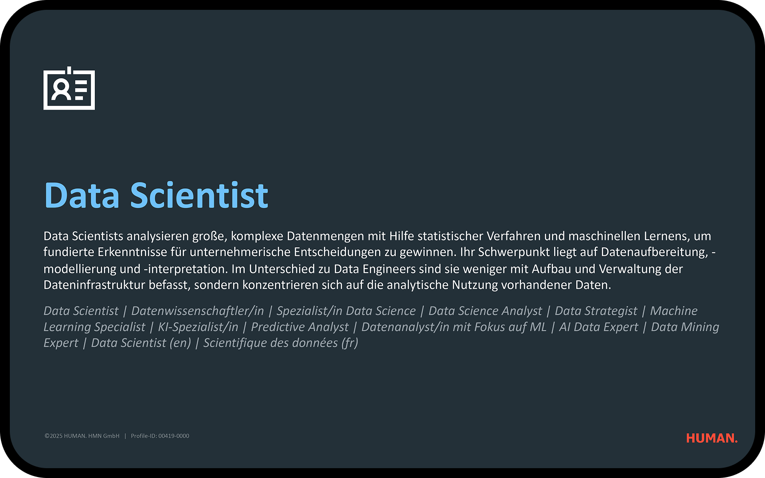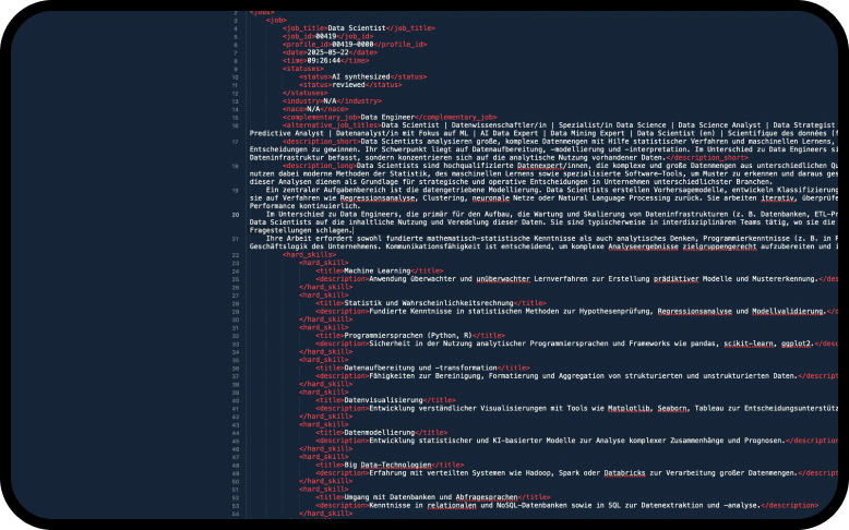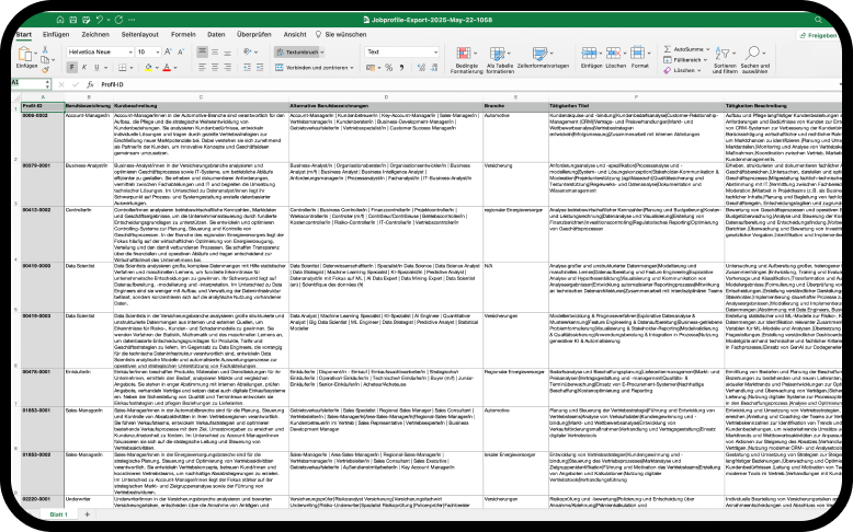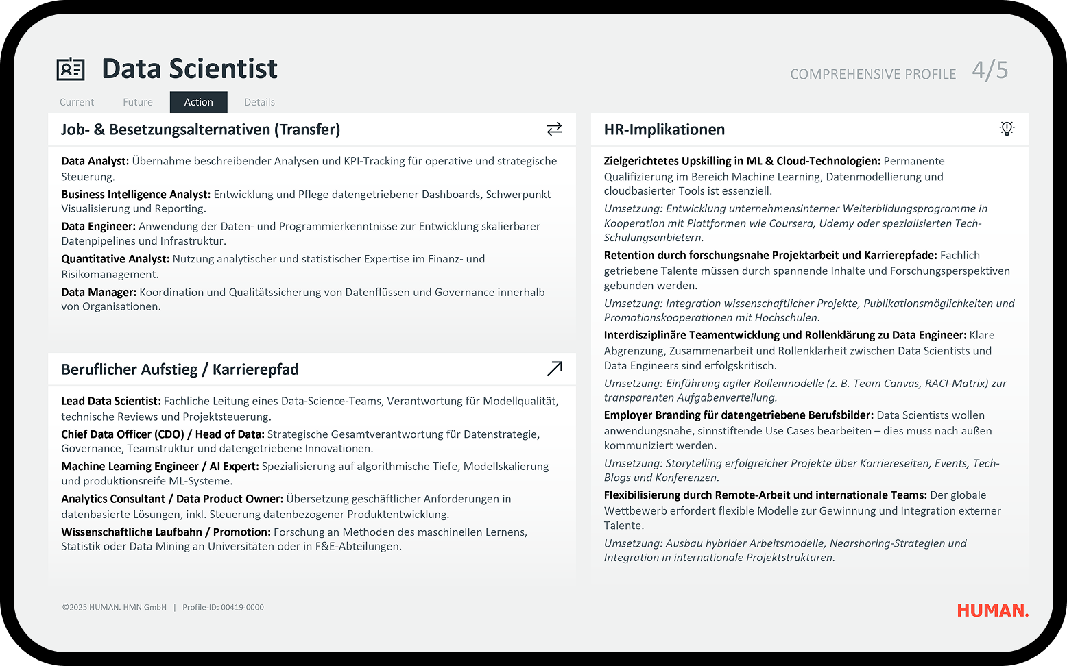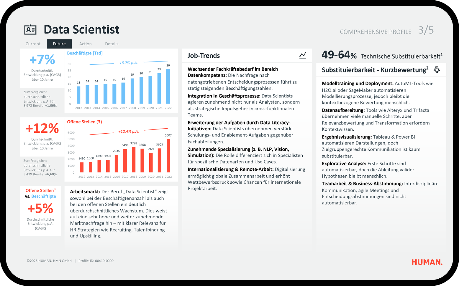 Jobbeschreibung Alternative Jobbezeichnungen Anforderungen / Qualifikation Hard Skills Soft Skills Future Skills TechStack Kerntätigkeiten Substituierbarkeit Digitalisierung GenAI-Auswirkungen Besetzungsalternativen / Transfer Aufstiegsmöglichkeiten / Karriere HR-Implikationen Arbeitsmarkt